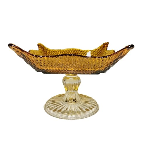 Studio Silversmiths Amber Glass Footed Pedestal Candy Dish